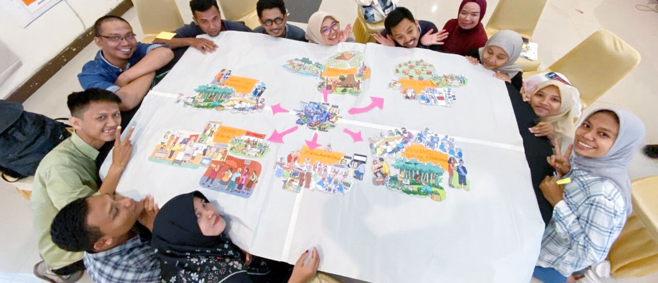 Fasilitator mengarahkan kerangka berpikir tim LRC agar dapat melihat organisasi sebagai sistem yang adaptif dan kompleks. Artinya organisasi dianggap sebagai makhluk hidup, instrumen pengukuran yang digunakan menyesuaikan dengan perspektif tersebut, yakni alat bantu visual, story felling dan belajar dari pengalaman.