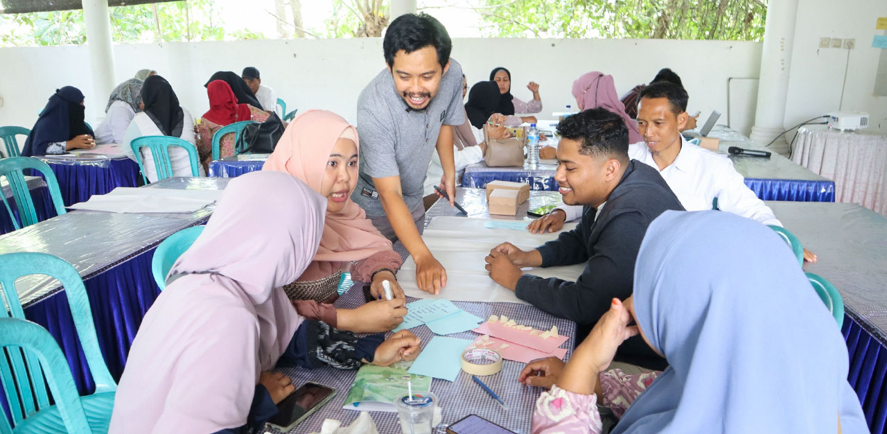 L. Farouq Wardana selaku Programme Officer (PO) INKLUSI BaKTI-LRC mendampingi peserta pelatihan dalam diskusi kelompok terkait dengan rencana tindak lanjut dari kegiatan Workshop Pembentukan dan Penguatan Unit Usaha untuk Pemberdayaan Ekonomi Tingkat Desa/Kelurahan yang diselenggarakan oleh LRC pada 16-17 Oktober 2024 di Lesehan Sekar Asri, Lombok Timur.