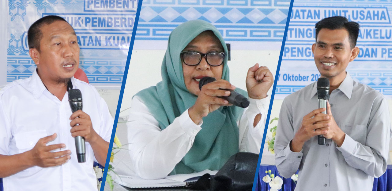 Narasumber Workshop Pembentukan dan Penguatan Unit Usaha untuk Pemberdayaan Ekonomi Tingkat Desa/Kelurahan: Dari Kiri – Muhammad Buhari, ST (Fungsional Pembina Industri Ahli Muda Dinas Perindustrian Lombok Timur), Nurul Saadah (Fungsional Pembina Industri Ahli Muda Dinas Perindustrian Lombok Timur, dan Masyhur (ABDSI NTB).