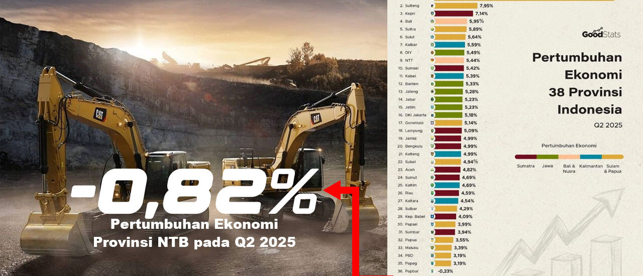 Pertumbuhan ekonomi Nusa Tenggara Barat (NTB) pada kuartal II-2025 menjadi sinyal peringatan keras. Badan Pusat Statistik (BPS) mencatat, ekonomi NTB terkoreksi −0,82 persen (y-on-y). Sektor pertambangan bahkan terpuruk lebih dalam, dengan kontraksi mencapai −29,93 persen. Angka ini membuktikan, jika tambang goyah, seluruh struktur ekonomi NTB ikut rapuh.