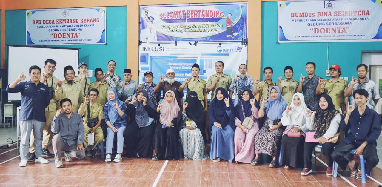 Melanjutkan implementasi Program INKLUSI di Kabupaten Lombok Timur, Lombok Research Center (LRC) selaku mitra Yayasan BaKTI menyelenggarakan kegiatan penguatan Kelompok Konstituen (KK) yang terdapat di empat desa di wilayah Kecamatan Aikmel, Kabupaten Lombok Timur yang dilaksanakan dalam dua tahap. Tahap pertama dilaksanakan pada 25 dan 26 Februari 2025 di Desa Kembang Kerang dan Desa Aikmel Utara. Selanjutnya, tahap kedua dilaksanakan pada 18 Maret 2025 di Desa Aikmel Barat, dan ditutup dengan sesi terakhir pada 22 Maret 2025 di Desa Aikmel Timur.